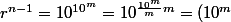 ^{\frac{10^m}{m}}=(10^m)^{\frac{2^m.5^m}{m}}=(10^m)^{\frac{2^m.5^m}{{2^{a+1}5^b}}}=(10^m)^{2^{m-a-1}.5^{m-b}}=(10^m)^{2.(2^{m-a-2}.5^{m-b})}=(10^m)^{2.K}\equiv (-1)^{2.K}[10^m+1]\equiv 1 [10^m+1])