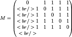 une matrice carrée avec n terme de valeur 1 et une diagonale de valeur 0.