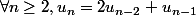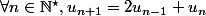 , on calcule les termes à partir du rang 2 en additionnant le précédent avec le double du précédent du précédent. On peut donc écrire à la place