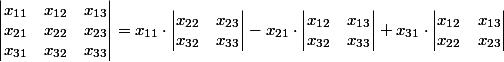 - Tu prend les coefficients de la première colonne un par un (en alternant les signes +, -, +)