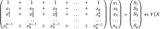 style Matrice de Vandermonde (A voir) dépendante de l'inconnu