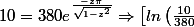 \right ]^2 \left ( 1-z^2 \right ) = z^2\pi^2 \Rightarrow z^2 \left ( \pi^2 + \left [ln\left ( \frac{10}{380} \right ) \right ]^2 \right ) = \left [ln\left ( \frac{10}{380} \right ) \right ]^2 \Rightarrow z = - \frac{ln \left ( \frac{10}{380} \right )} {\sqrt{\pi^2 + \left [ln\left ( \frac{10}{380} \right ) \right ] ^2 }} \approx 0.75681879)