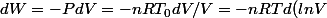 PV=nRT, donc P = RT/V donc dW=-RT dV/V donc