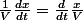 oui oki mais on a 1/V avant dx/dt donc ça revient au méme si on introduit 1/V pour ça jpige pas, t'aurais pas un exemple ou un exo du type que jvoye?