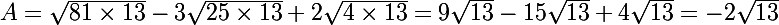a = racine 13 * 81 - 3 racine 13 *25 + 2 racine 13 * 4