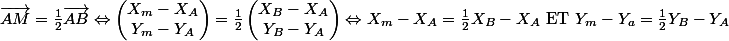 Si M est la milieu du segment [AB], alors on peut écrire l'égalité vectorielle
