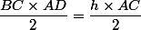 On calcule l'aire de ABC de deux manières, deux façons différentes pour obtenir une équation.