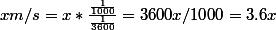 x km/h = 1000*x/3600 m/s = x/3.6
