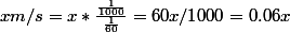 Pour convertir des m/s en km/min :