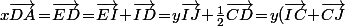 \!-\!\frac{1}{2}\vec{DC}<br />\!=\!y(\frac{1}{2}\vec{DC}\!+\!\frac{1}{2}\vec{CB})\!-\!\frac{1}{2}\vec{DC}<br />\!=\!\frac{y}{2}\vec{DA}\!+\!\frac{y-1}{2}\vec{DC})