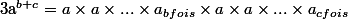 Autrement dit dans le produit on a b+c fois le nombre a, ce qui est équivalent à dire qu'on a b fois le nombre a, puis c fois le nombre a :