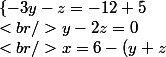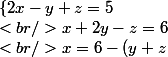 \right) -y+z=5 \\<br />6-(y+z)+2y-z=6 \\<br />x=6-(y+z))