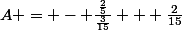 Calculer en simplifiant A=-2/5:3/15+2/15