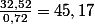 36.13 / 0.8 = 45.16