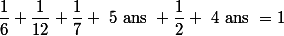 on peut additionner toutes les fractions et d'un autre côté , les deux durées, puis calculer combien la somme des deux durées représentent en fraction la vie totale (égale à 1)
