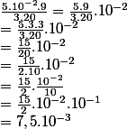 commencons par faire (5*9) / (3*20) = (5*3*3)/(3*5*2*2) = 3/4 = 0.75 = 7.5 fois 10 puissance -1