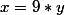 donc tu peux maitenant remplacer x par 9 y dans ton expression (1) et à partir de la tu n'as q'un seul inconnu ça tu sais faire