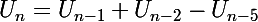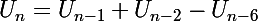 - le nombre de combinaisons de n marches commençant par ab-b-, soit 1 pour tout
