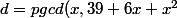 -Soit d le pgcd de x-2 et x²+2x+31. Alors x=2 mod d donc 0=x²+2x+31=39 mod d, donc d divise 39