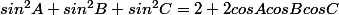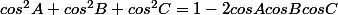 Trigo de base dans le triangle : cos²A + cos²B + cos²C = 1 - 2 cosA cosB cosC