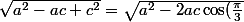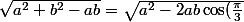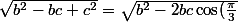 Or d'après le théorème d'Al-Kashi : c = \sqrt{a^2 -2ab\cos(\frac{\pi}{3})+b^2} a = \sqrt{b^2 -2bc\cos(\frac{\pi}{3})+c^2} b = \sqrt{a^2 -2ac\cos(\frac{\pi}{3})+c^2}