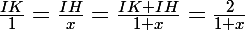 demontrer que la hauteur IK du triangle IAB est egale a 2/x+1 et que la hauteur IH de DIM egale a 2x/x+1