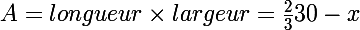 \times{x}=\frac{2}{3}\times{(30x-x^2)}=\frac{-2}{3}{x^2}+20{x})