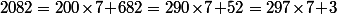 Si on revient à la division complète de 2082 par 7, ça correspond à écrire comme première étape que