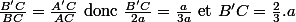 b) B' est el projeté orthogonal de B sur al droite (AC). calculer B'A/B'C