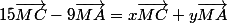 Donc 15MC-> - 9MA-> = xMC-> + yMA->