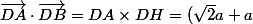 La du coup j'ai fait Vecteur DA scalaire vecteur DB = Da x DB x cos D
