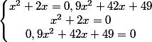La voilà : X^2+2X=0,9X^2+42X+49=0