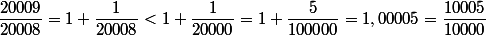 L'encadrement est donc (20009/20008)<x<(2009/2008).