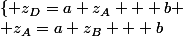 . Traduis par un système d'équations f(A)=D et f(B)=A.