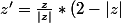 Alors on a une application f qui a tout point M d'affixe z non nulle associe le point M'=f(M) d'affixe z' tel que [TEX]z'=/frac{z}{mod(z)}*(2-[z])[/TEX ] avec [z] qui signifie module ou valeur absolue de z .On a aussi z=r*e^ia r etant le module de z et a un argument de z.On a aussi [TEX] z'=e^{2-r}[TEX ]