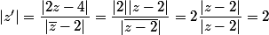 Maintenant |z'|=2 : sait tu ce que c'est un module? Est ce que tu vois les complexes géométriquement?