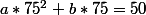 On résout : a(0-75)²+50=0 (Le premier 0 correspondant à l'abscisse et le second à l'ordonnée).