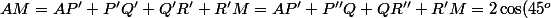 On peut noter que l'énoncé contient une information de trop : si on trace un segment AP de longueur 2 sur une feuille, on peut sans ambiguïté tracer le segment PQ puis QR puis RM et donc avoir le dessin complet sur lequel on vérifie que l'angle MAP vaut 45°.