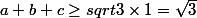 d'ou : a+b+c >= racine (3)