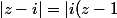 \\<br />|z-i|=|z-iz| (2)<br />\end{array}<br />\right)