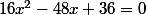 Je me suis dit que 16x² = (4x)² et que 36 = 6² mais 48x ? Comment faire ? Est-il possible de résoudre une équation produit comme ceci : x(16x-48) + 36 = 0?