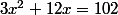 soit je me suis tromper en annoncant le résultat trouver et en vériter le résultat est : 3x²+12x-102 = 150