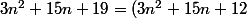 en déduire les valeurs de n (entier naturel) tel que 3n2+15n+19 est divisible par n+1