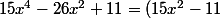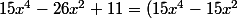(*) et ici, on constate trivialement que, si x^2=1 alors 15.x^4 - 26.x^2 + 11 = 15-26+11 = 0