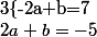 Il suffit de résoudre le système pour en déduire a et b. (Tu devrais trouver normalement a=-3 et b=1)
