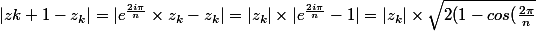 zk(e^(2ipi/n)-1) et je ne vois pas trop comment retomber sur 2Rsin(pi/n)?