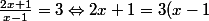 \Leftrightarrow 2x + 1 = 3x - 3\Leftrightarrow x = 4)