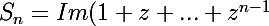 1 + z + ... + z^(n-1) = ( 1 - (z)^n) / ( 1 - z)