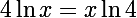 4. Montrer que, pour x > 0, f(x) = g(x) <=> (ln(x) / x) = (ln (4) / 4).