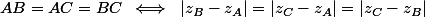 Il faut que les trois longueurs du triangle soient égales. Cela se traduit par les équations